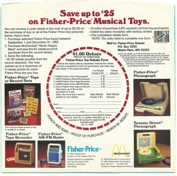 "FREE" - With the purchase of any Happy Meal at McDonald's (1985).