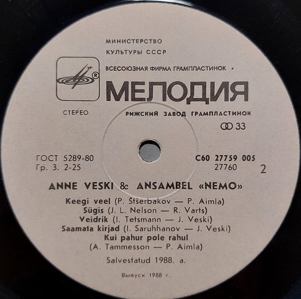 Таллинская студия грамзаписи. Запись 1988 г.