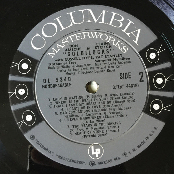 The track titles are as they appear on the labels. The track list on the back cover omits the subtitles for tracks B6 and B8.