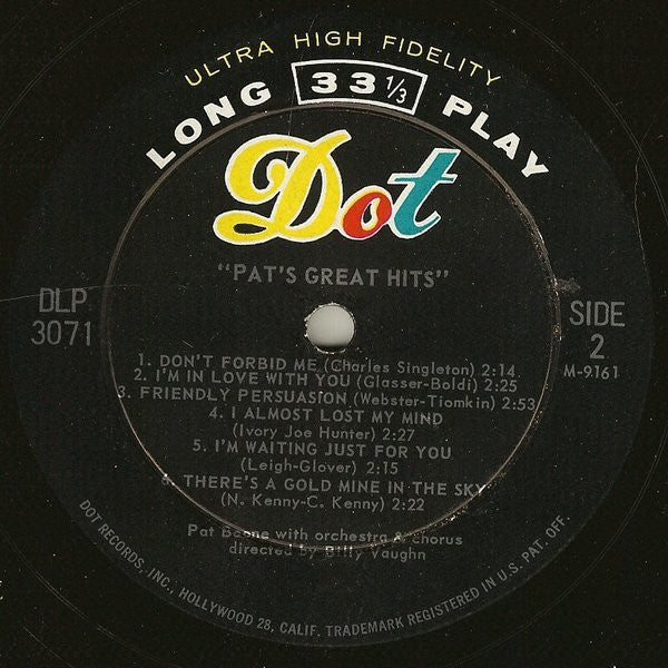 This version has black deep groove labels with silver print, Dot logo in yellow, red and blue, and white info at top.