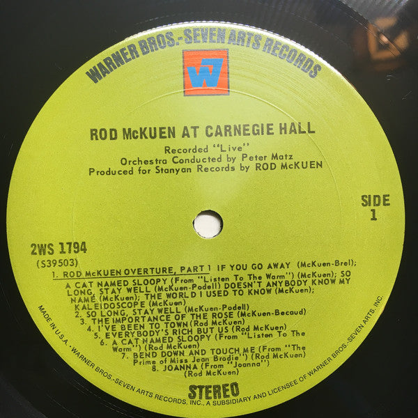 A1. Rod McKuen Overture Part 1: If You Go Away / A Cat Named Sloopy / So Long, Stay Well / Doesn't Anybody Know My Name / The World I Used To Know / Kaleidoscope 4:10