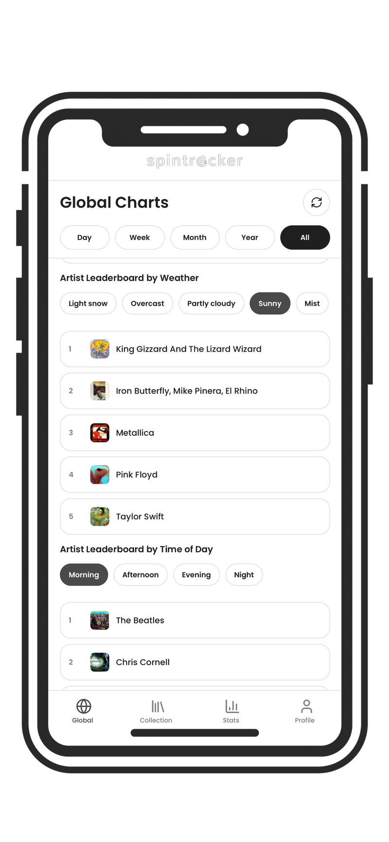 Spin Tracker visualizes your habits over time—your most-played artists, genres, and albums; and how your tastes evolve across weeks, months, years, time of day or even the weather.