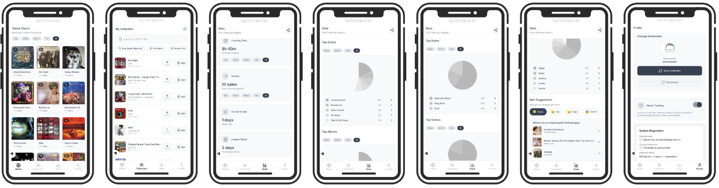 SpinTracker turns the simple act of dropping the needle into a meaningful, trackable experience. Start documenting your spins and see your music in a whole new way.