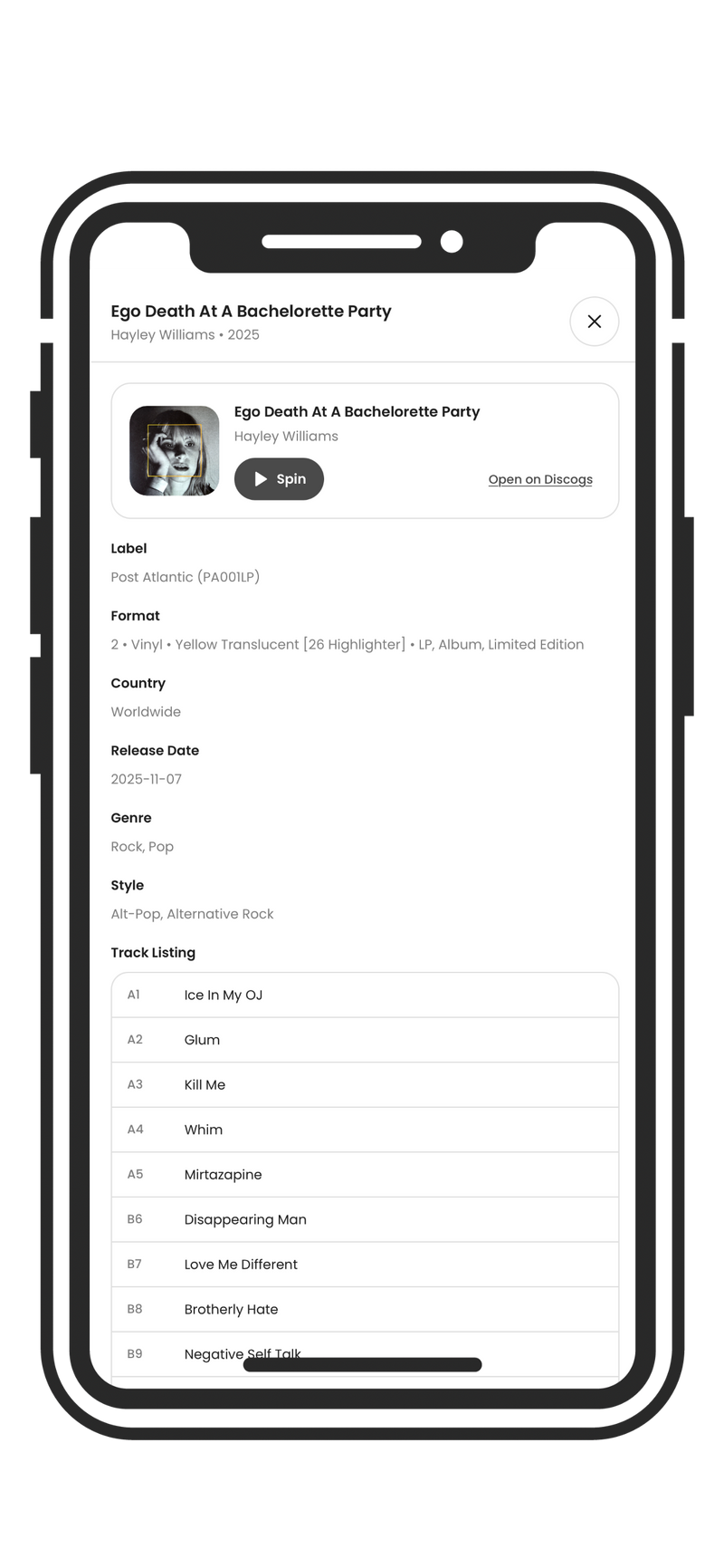 Perfect for casual listeners and serious collectors alike, Spin Tracker helps you deepen your connection to your vinyl collection, celebrate your musical rituals, and rediscover the joy of slowing down for a spin.